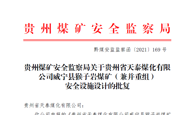 威寧縣猴子巖煤礦(兼并重組)安全設施設計