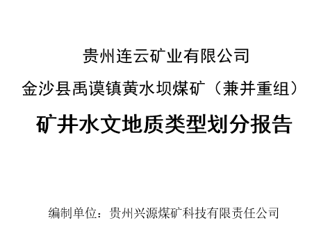 金沙縣禹謨鎮黃水壩煤礦(兼并重組) 礦井水文地質類型劃分報告