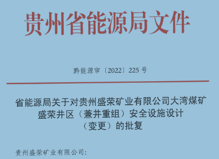 貴州盛榮礦業(yè)有限公司 大灣煤礦盛榮井區(qū)(兼并重組) 安全設(shè)施設(shè)計(變更)