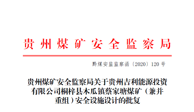 貴州吉利能源投資有限公司 桐梓縣木瓜鎮(zhèn)蔡家塘煤礦(兼并重組)安全設(shè)施設(shè)計