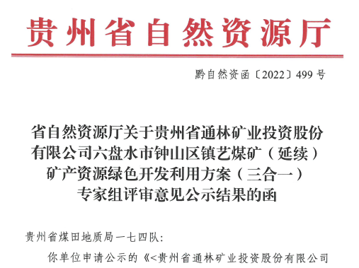 六盤水市鐘山區(qū)鎮(zhèn)藝煤礦(延續(xù))礦產(chǎn)資源綠色開發(fā)利用方案(三合一)