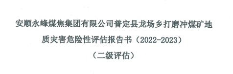 安順永峰煤焦集團有限公司普定縣龍場鄉(xiāng)打磨沖煤礦地質(zhì)災(zāi)害危險性評估報告書(2022-2023年度) (二級評估)