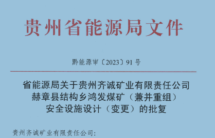 貴州齊誠礦業(yè)有限責任公司 赫章縣結(jié)構(gòu)鄉(xiāng)鴻發(fā)煤礦(兼并重組)安全設(shè)施設(shè)計(變更)