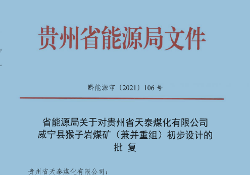 貴州省天泰煤化有限公司威寧縣猴子巖煤礦初步設計