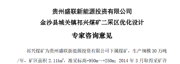 貴州黎明能源集團(tuán)有限責(zé)任公司金沙縣禹謨鎮(zhèn)牌坊巖煤礦