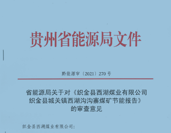 織金縣西湖煤業有限公司織金縣城關鎮西湖溝溝寨煤礦(兼并重組)節能報告