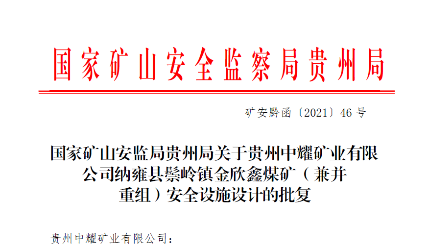 納雍縣鬃嶺鎮金欣鑫煤礦(兼并重組)安全設施設計