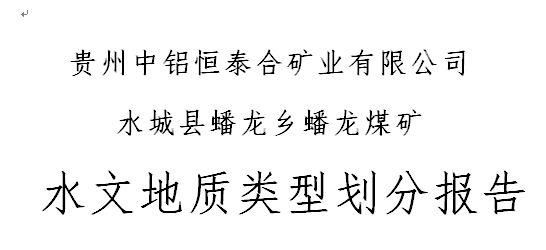 水城縣大田煤礦(兼并重組)水資源論證報告書