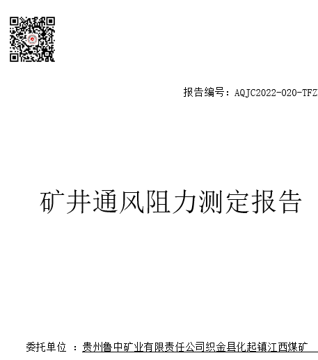 貴州魯中礦業有限責任公司織金縣化起鎮江西煤礦礦井通風阻力測定