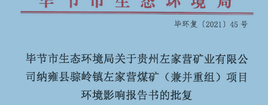 貴州左家營(yíng)礦業(yè)有限公司納雍縣骔嶺鎮(zhèn) 左家營(yíng)煤礦(兼并重組)項(xiàng)目“三合一”環(huán)境影響報(bào)告書