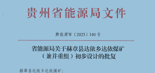 赫章縣達依鄉達依煤礦(兼并重組) 初步設計