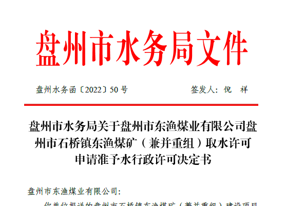 盤州市東漁煤業有限公司盤州市石橋鎮東漁煤礦(兼并重組)水資源論證報告