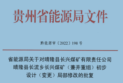 晴隆縣長流鄉長興煤礦(兼并重組) 初步設計(變更)局部修改