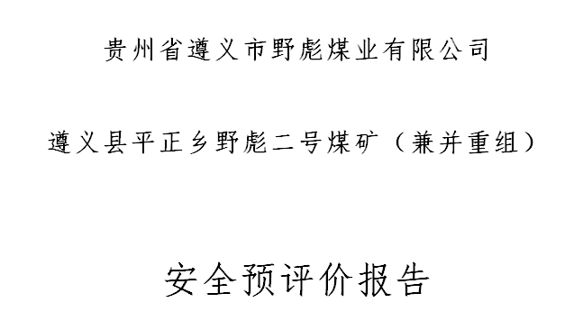 遵義縣平正鄉(xiāng)野彪二號煤礦(兼并重組)安全預評價
