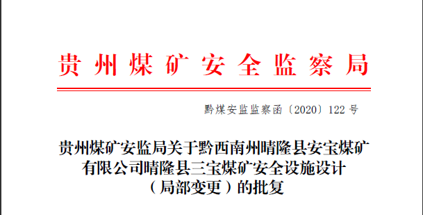 晴隆縣三寶煤礦(兼并重組) 安全設施設計(局部修改)