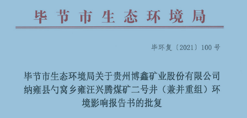 納雍縣勺窩鄉雍汪興騰煤礦二號井(兼并重組)“三合一”環境影響報告書