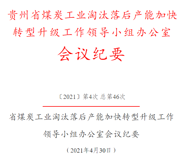 貴州省煤炭工業淘汰落后產能加快轉型升級工作領導小組辦公室(省能源局代章)