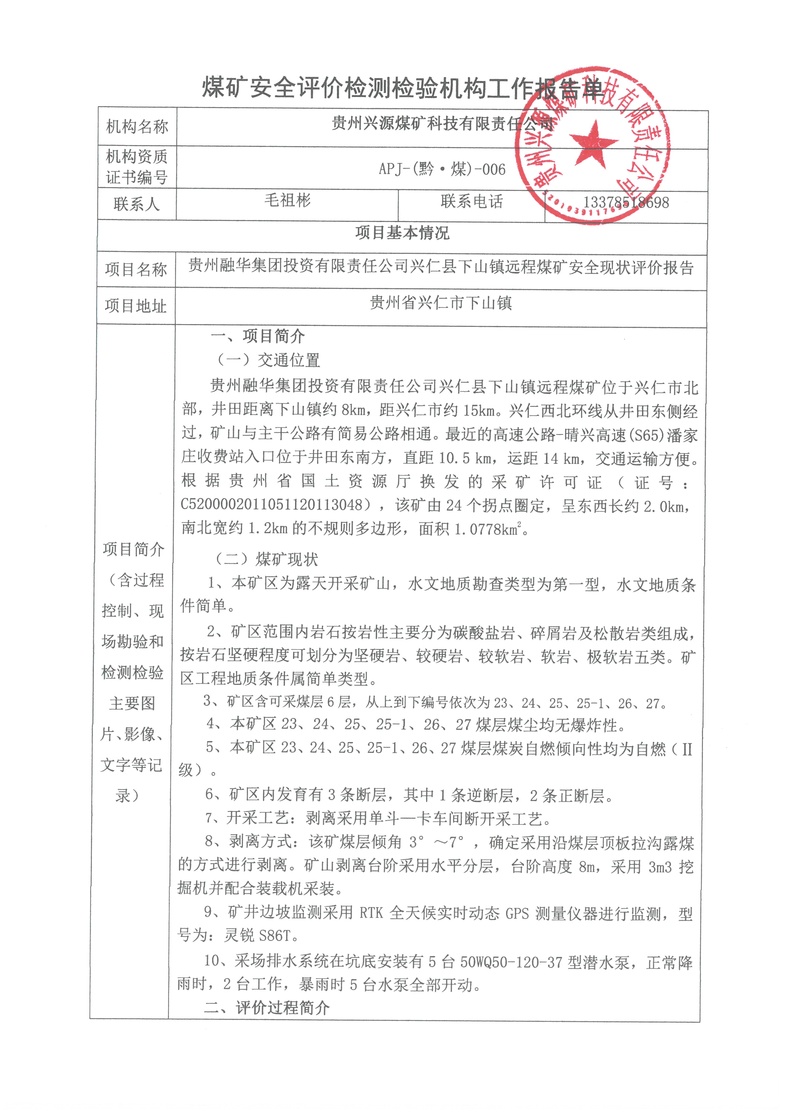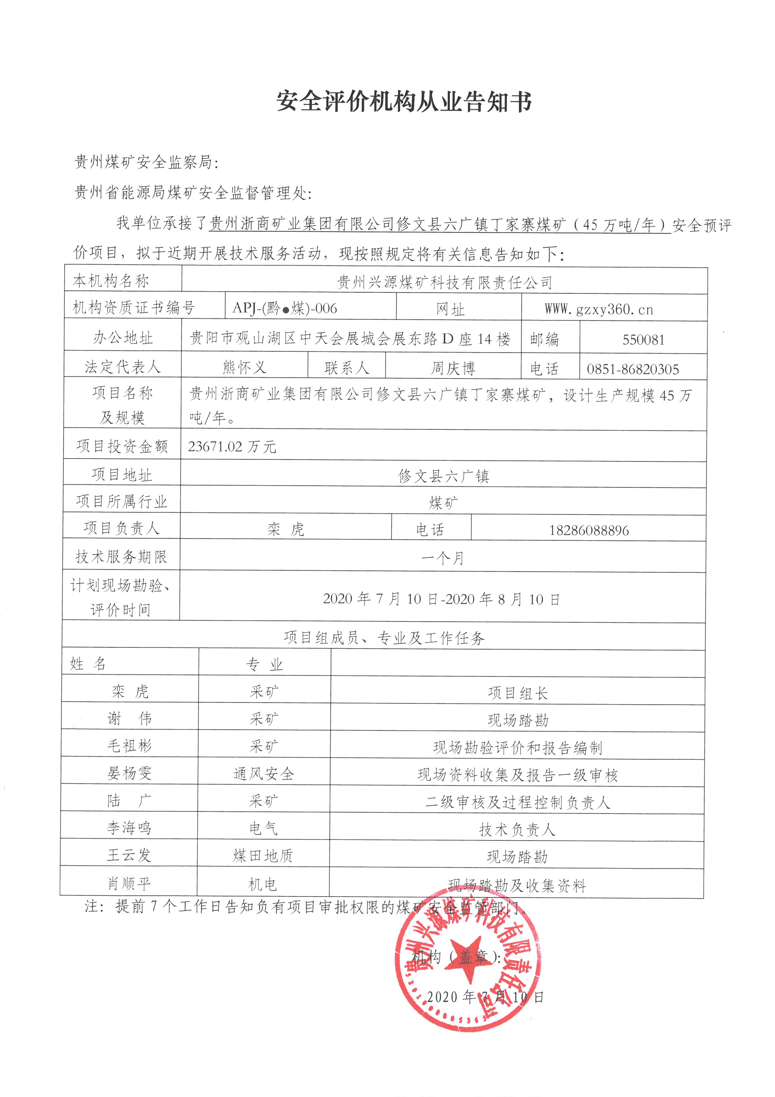 職業病危害評價機構從業告知書[織金縣珠藏鎮紅巖腳煤礦]