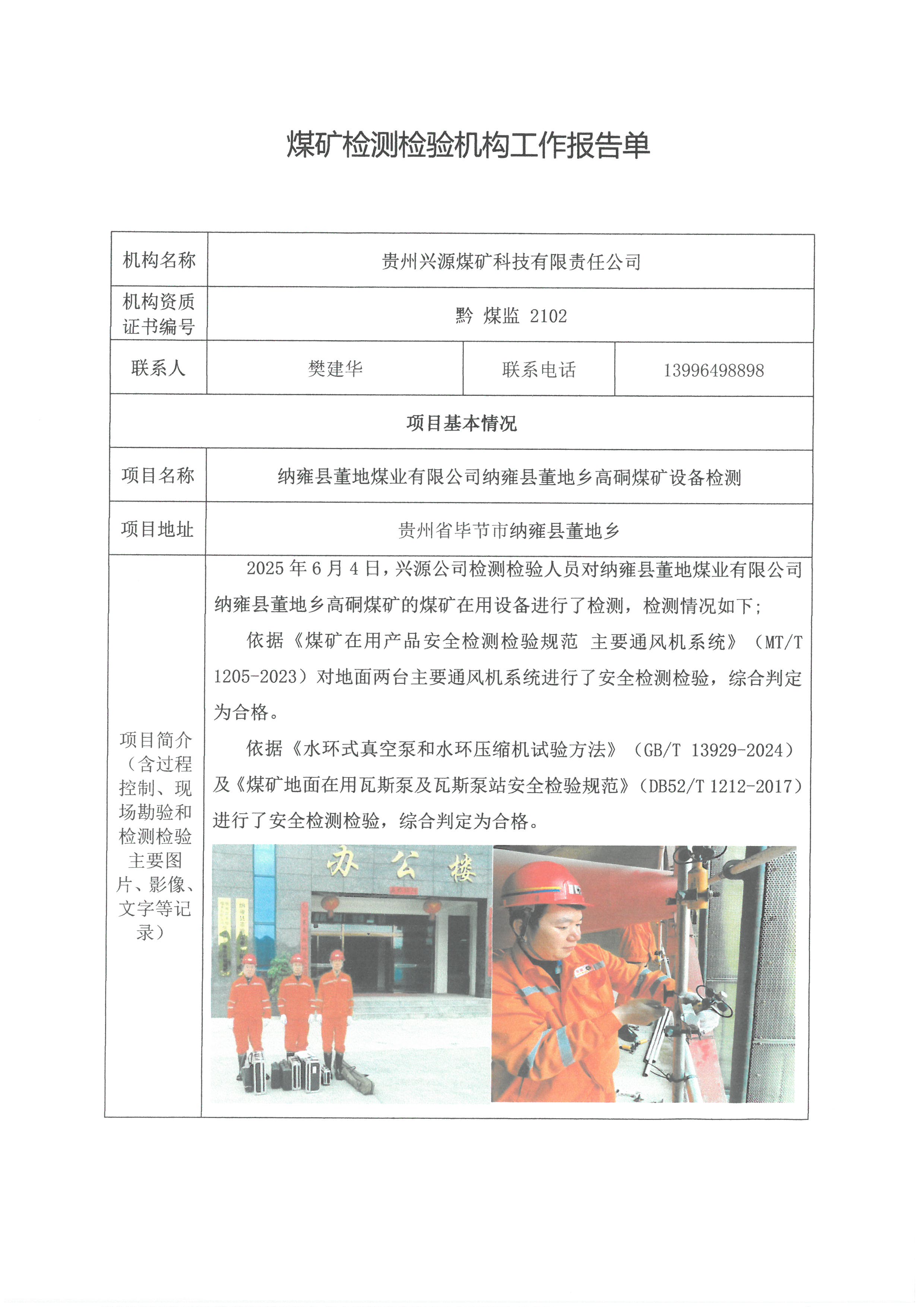 煤礦檢測(cè)檢驗(yàn)機(jī)構(gòu)工作報(bào)告單【納雍縣董地煤業(yè)有限公司納雍縣董地鄉(xiāng)高硐煤礦設(shè)備檢測(cè)】