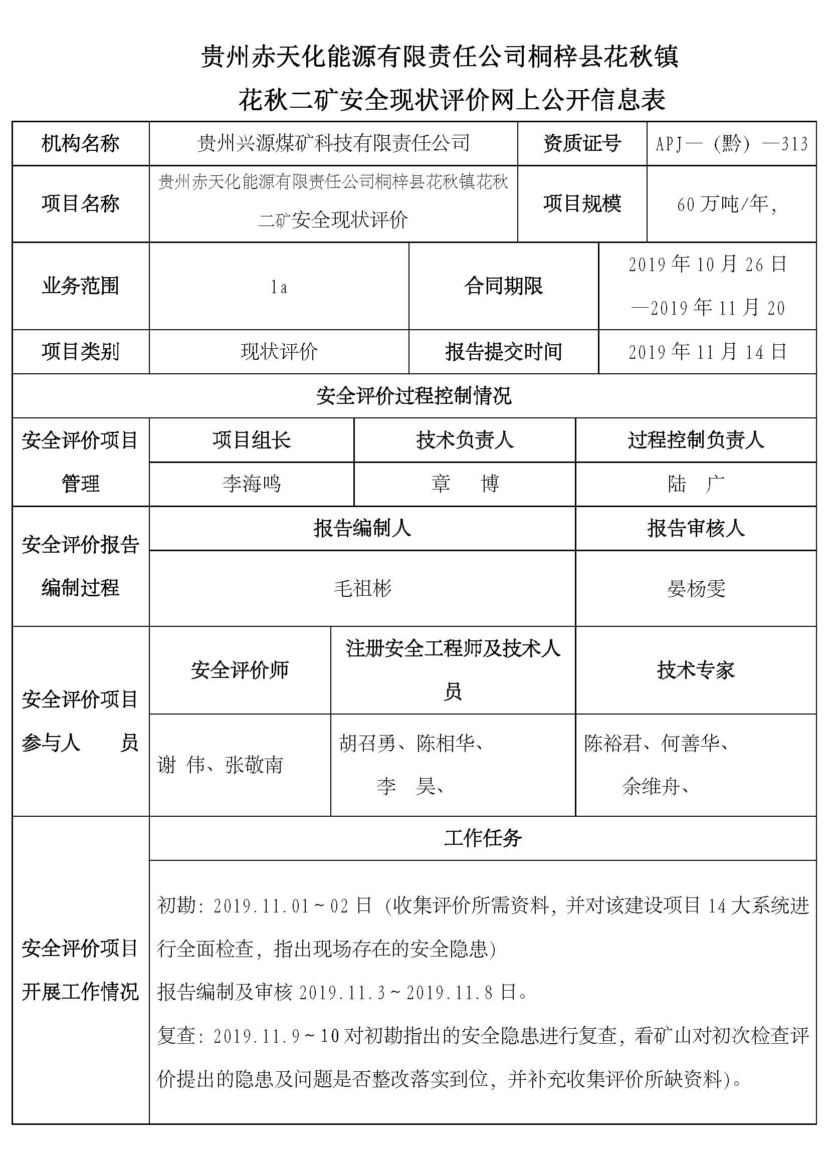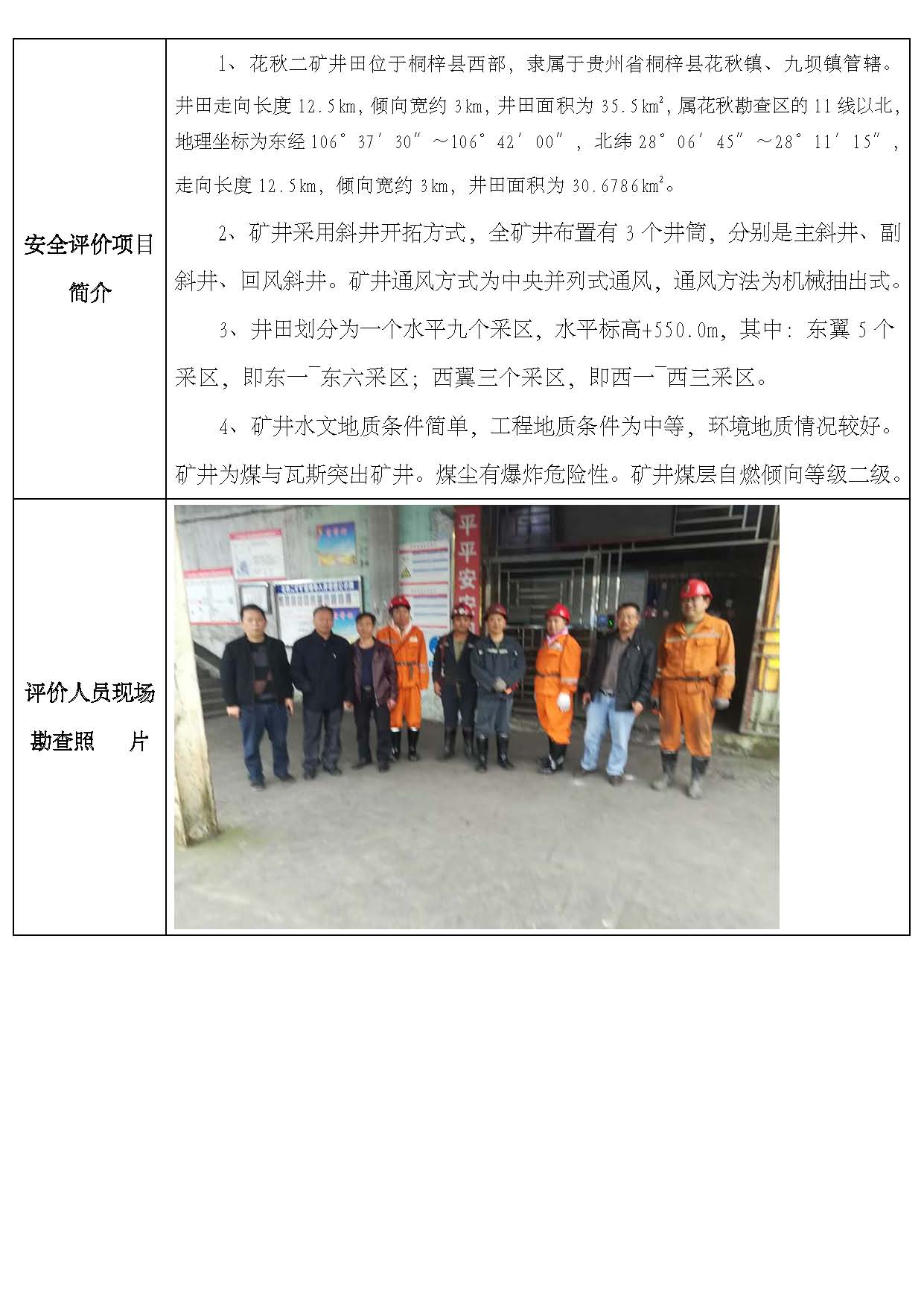 貴州赤天化能源有限責任公司桐梓縣花秋鎮花秋二礦安全現狀評價網上公開信息表