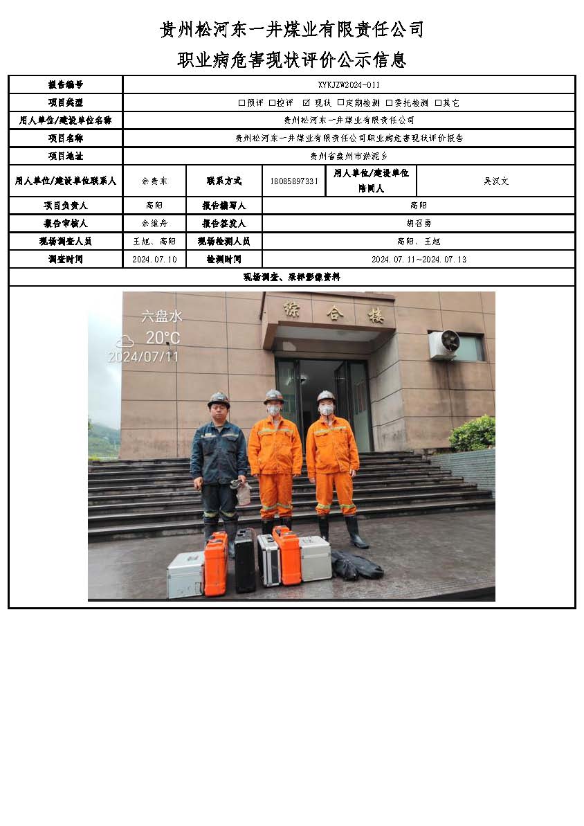 貴州松河東一井煤業(yè)有限責任公司職業(yè)病危害現(xiàn)狀評價公示信息