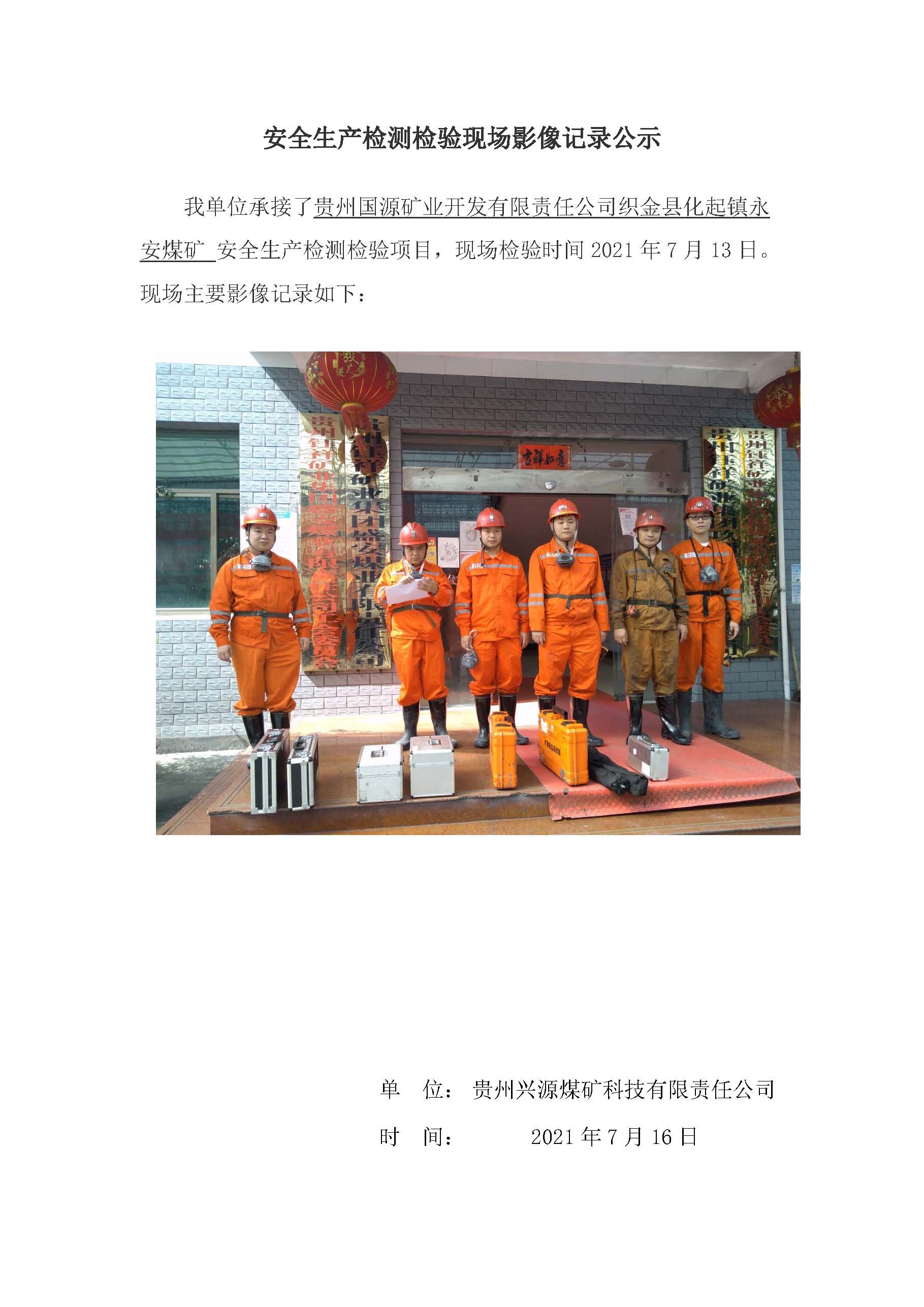 安全生產檢測檢驗現場影像記錄公示【貴州天健礦業集團股份有限公司金沙縣源村鄉回歸煤礦】