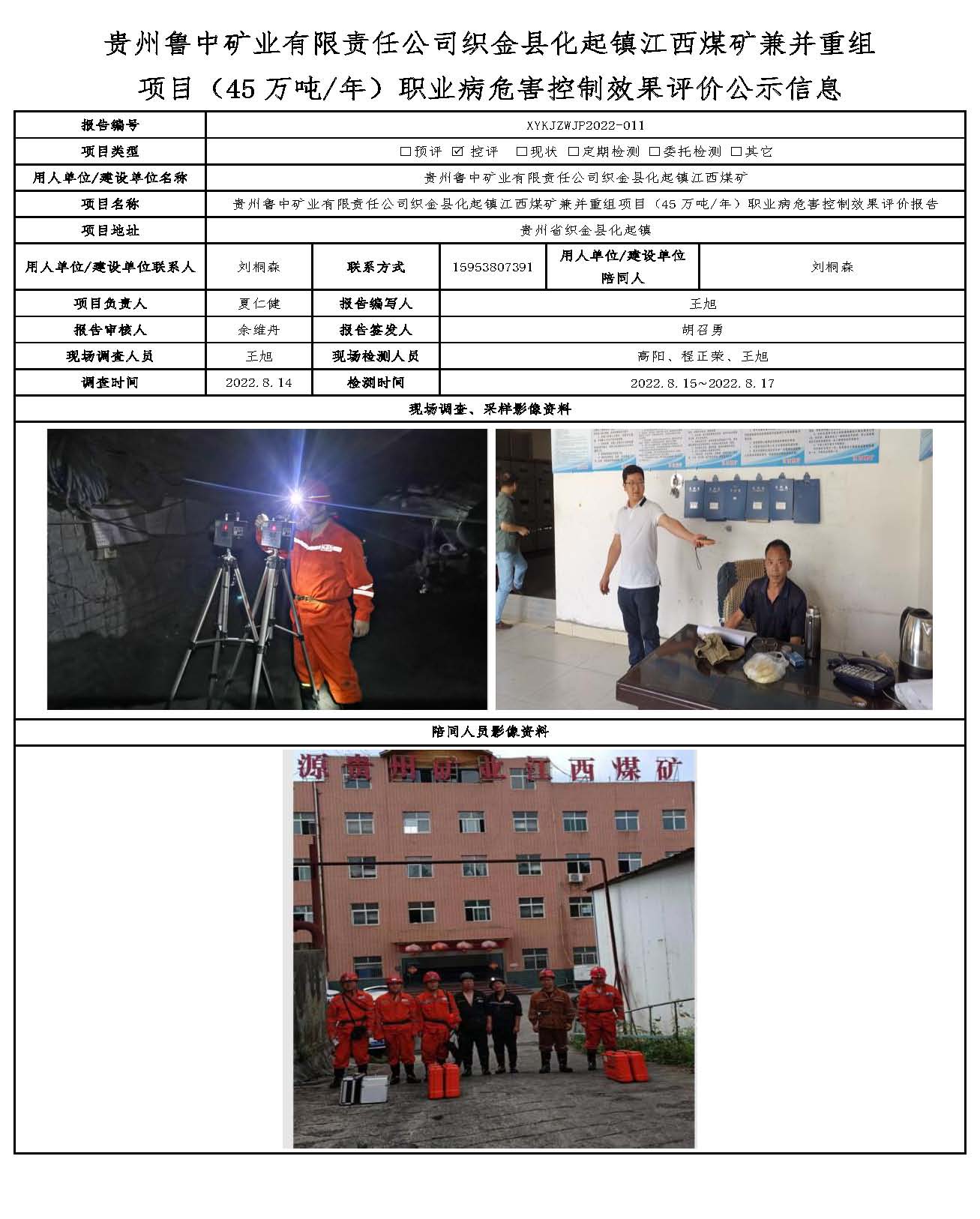 貴州魯中礦業有限責任公司織金縣化起鎮江西煤礦兼并重組項目職業病危害控制效果評價公示信息