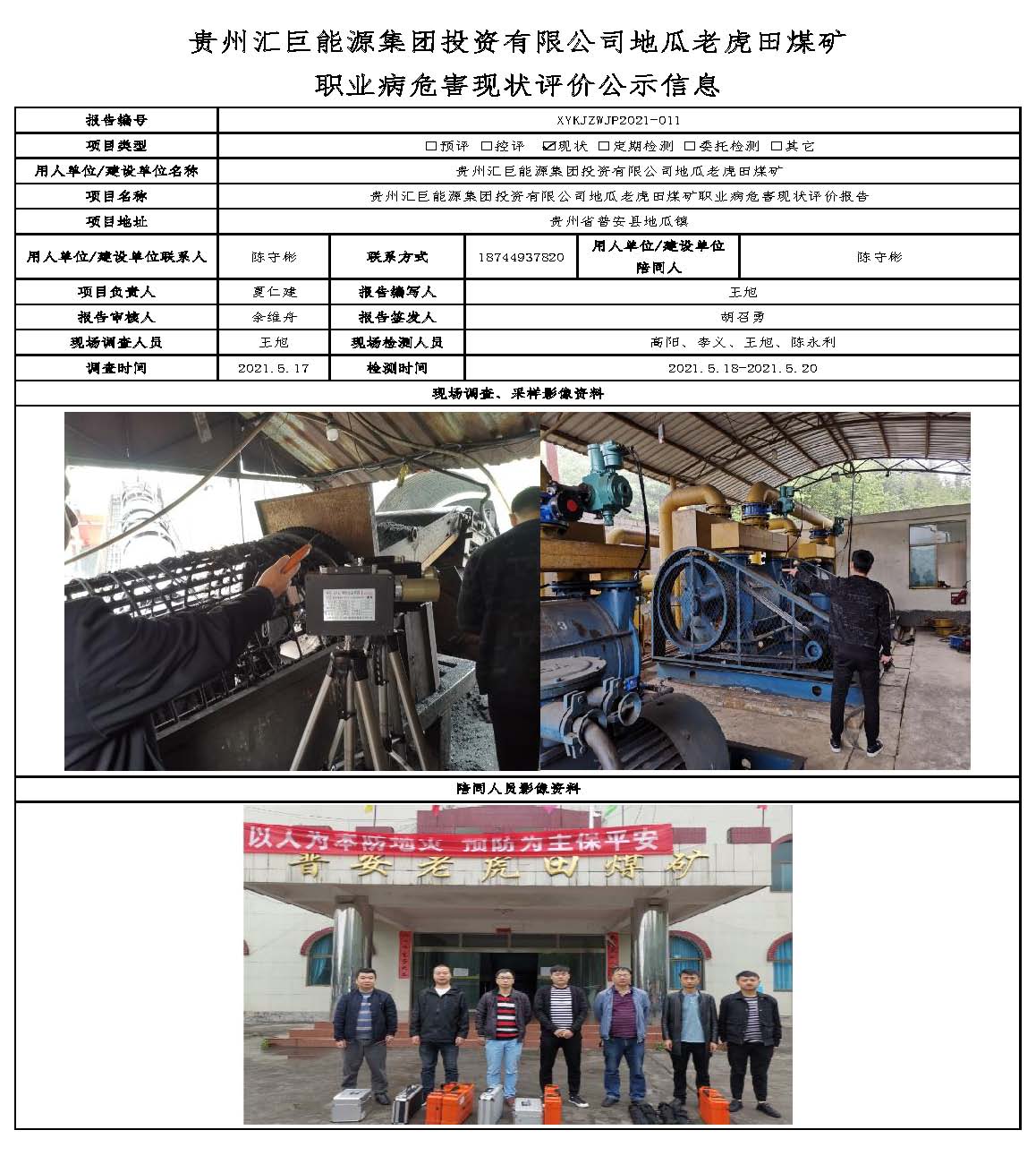 貴州匯巨能源集團投資有限公司地瓜老虎田煤礦 職業病危害現狀評價公示信息