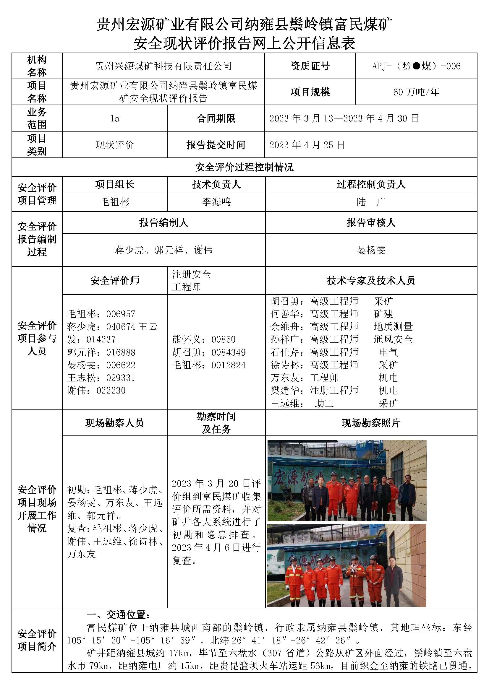 貴州宏源礦業(yè)有限公司納雍縣鬃嶺鎮(zhèn)富民煤礦安全現(xiàn)狀評(píng)價(jià)報(bào)告網(wǎng)上公開信息表