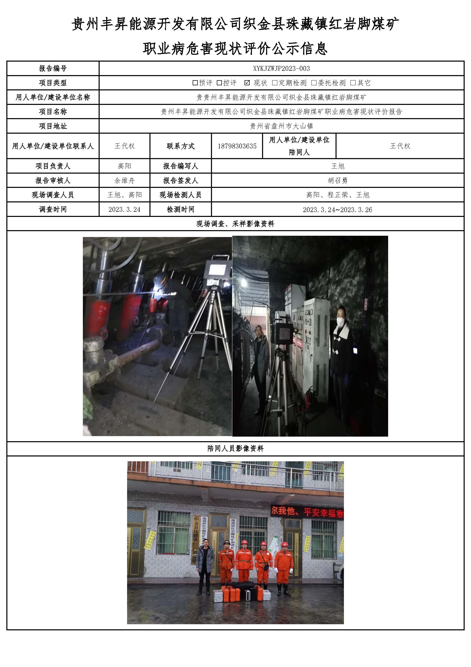 貴州豐昇能源開發(fā)有限公司織金縣珠藏鎮(zhèn)紅巖腳煤礦 職業(yè)病危害現(xiàn)狀評價公示信息