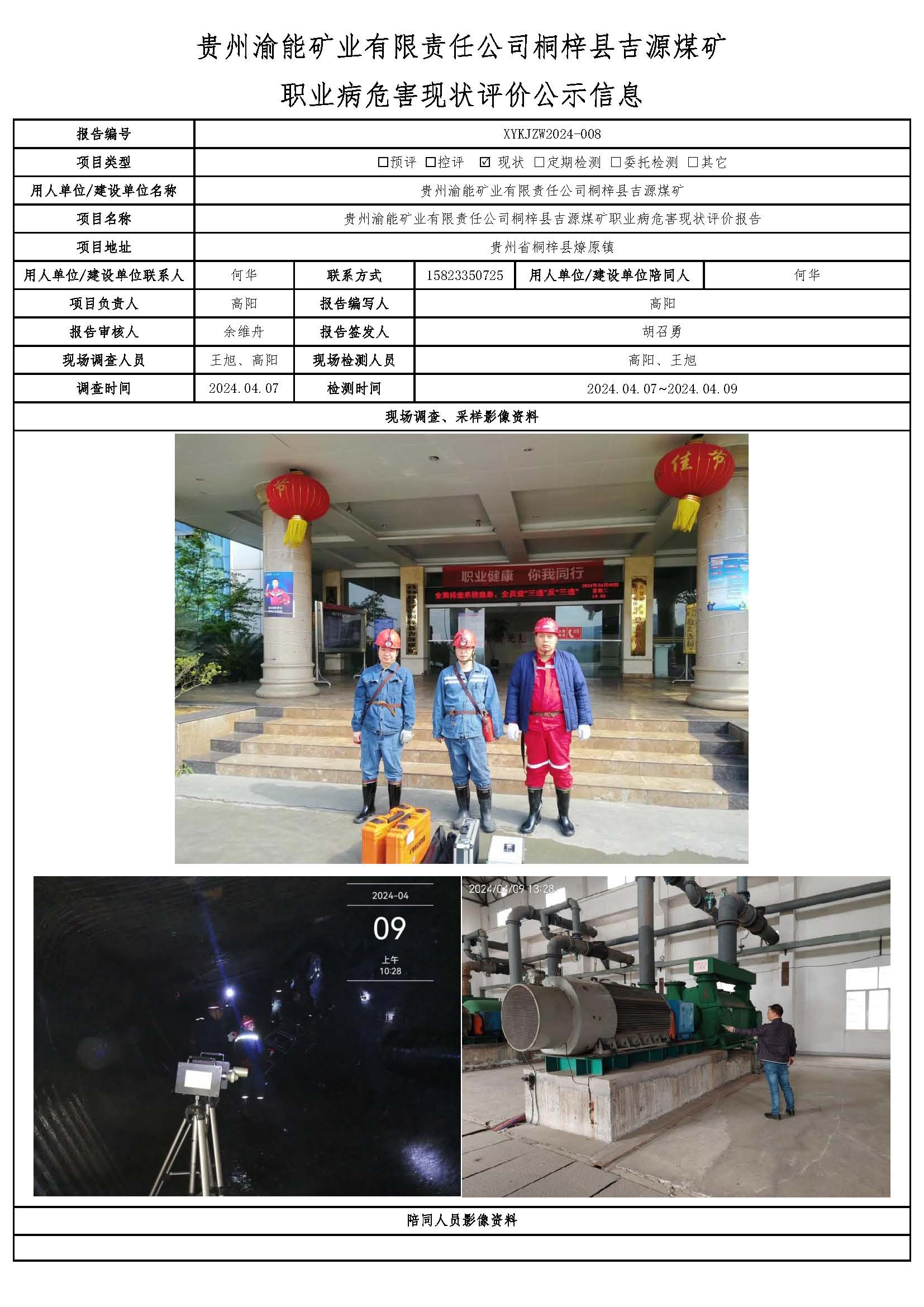 貴州渝能礦業(yè)有限責(zé)任公司桐梓縣吉源煤礦 職業(yè)病危害現(xiàn)狀評(píng)價(jià)公示信息