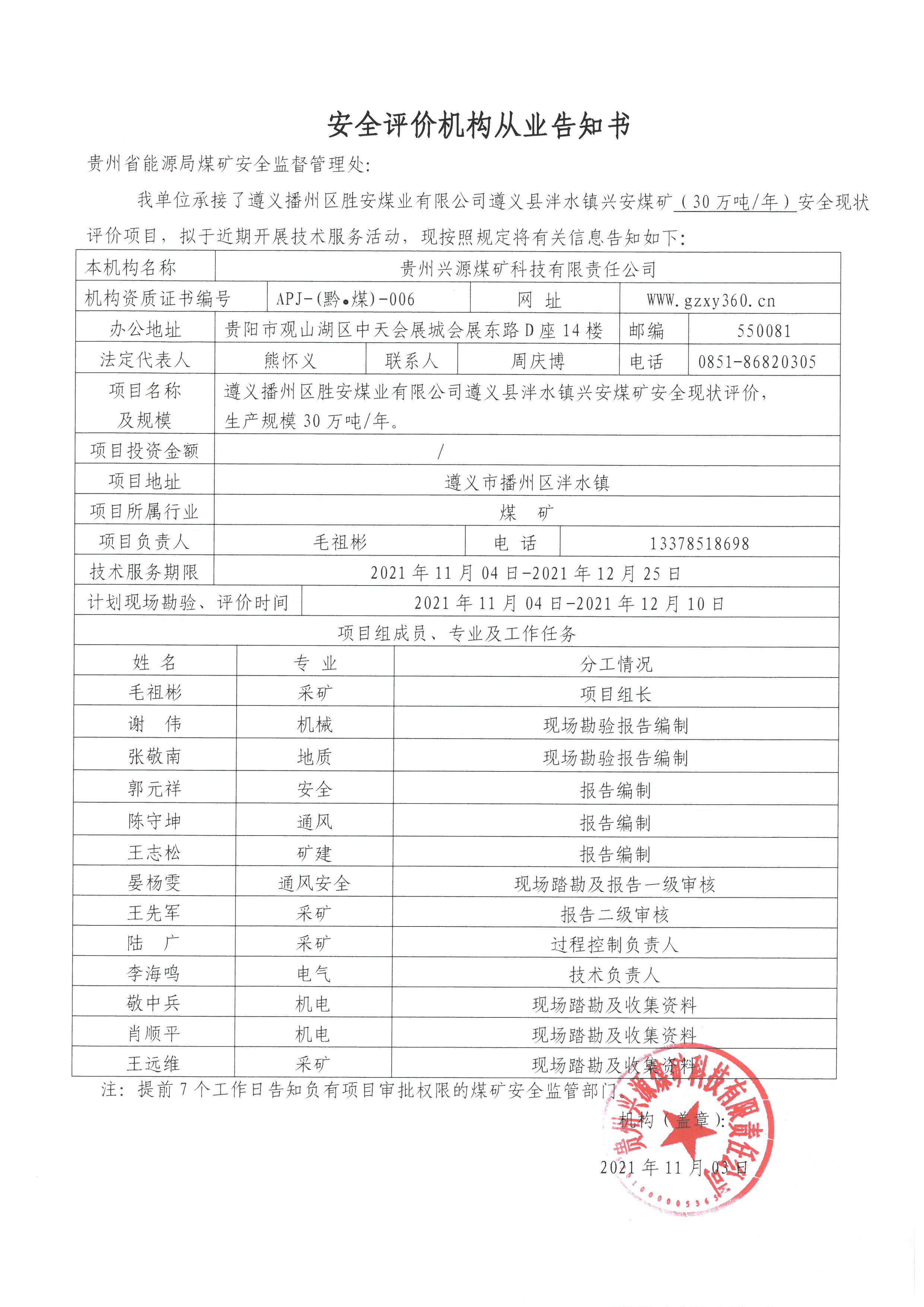 貴州省興仁縣下山鎮興民煤礦 | 河南理工大學煤礦安全工程技術研究中心 |