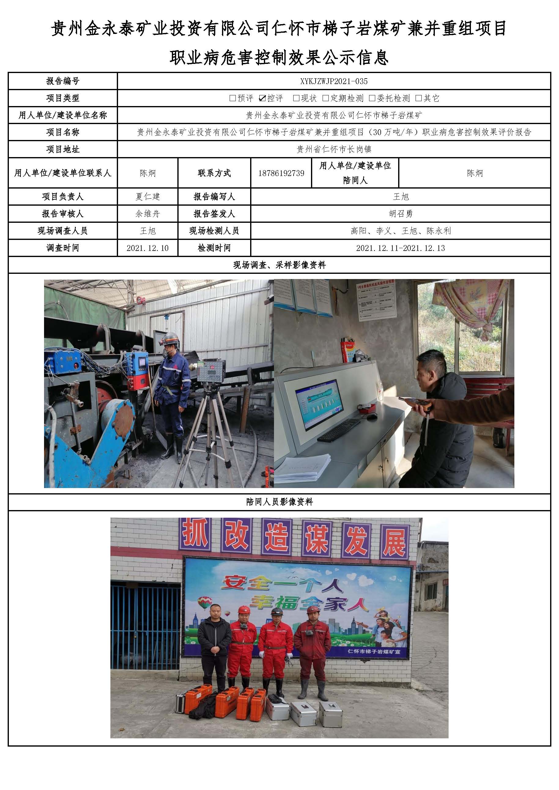 貴州金永泰礦業(yè)投資有限公司仁懷市梯子巖煤礦兼并重組項(xiàng)目 職業(yè)病危害控制效果公示信息