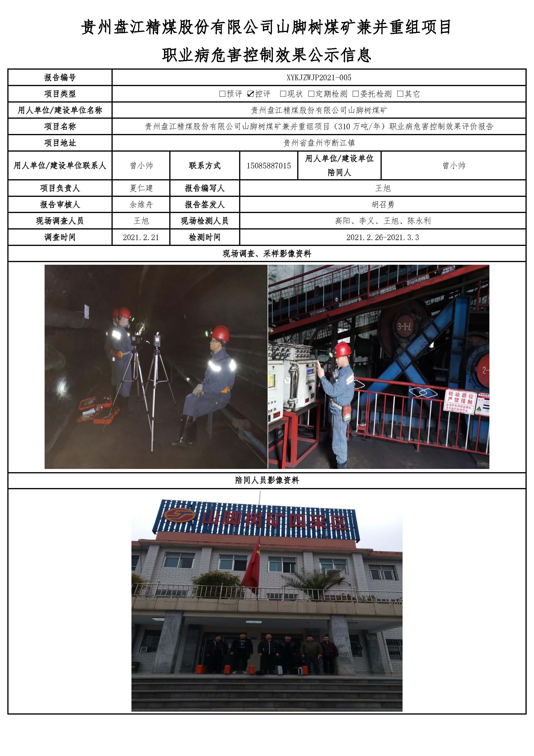 貴州盤江精煤股份有限公司山腳樹煤礦兼并重組項目 職業病危害控制效果公示信息