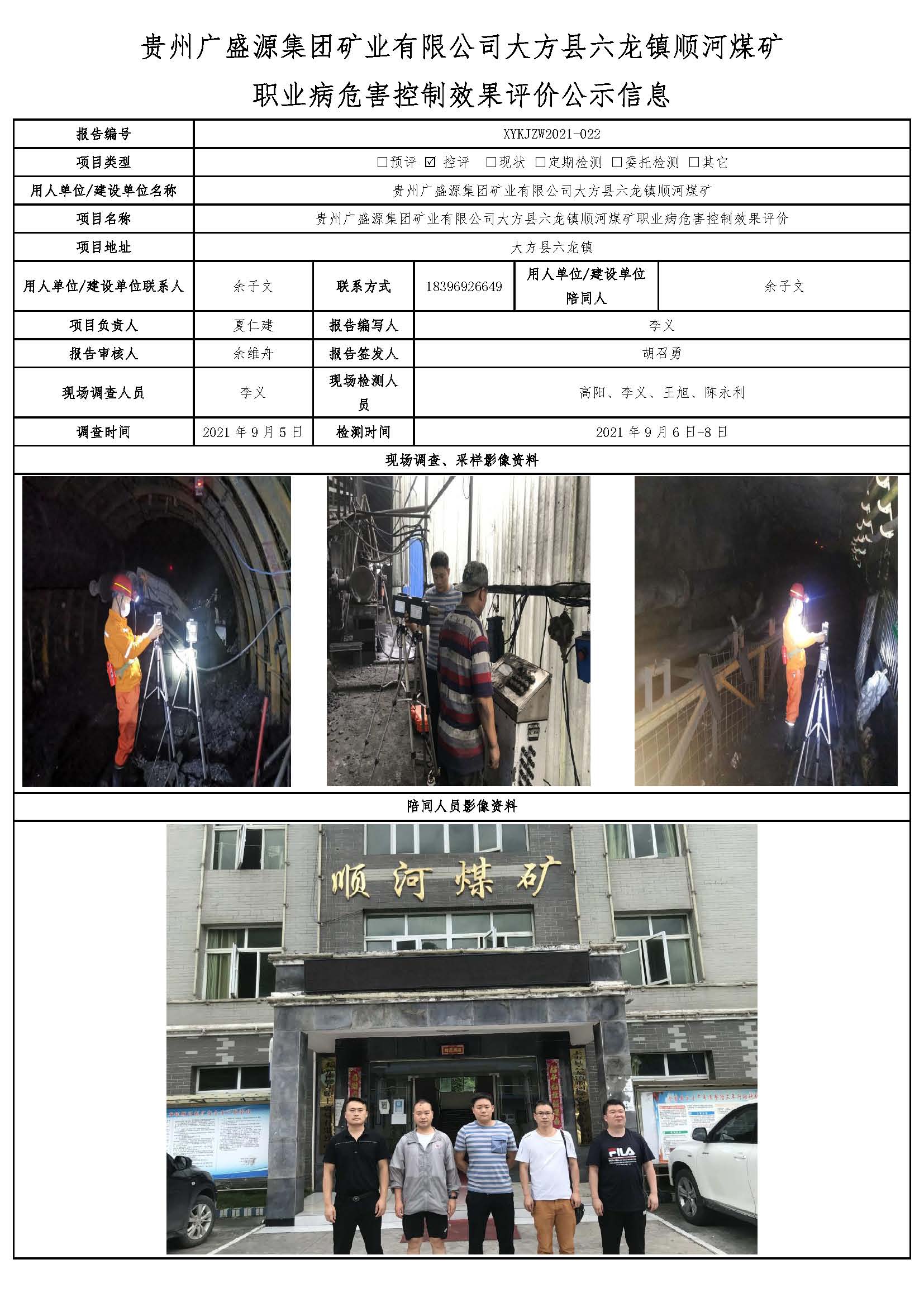 貴州廣盛源集團(tuán)礦業(yè)有限公司大方縣六龍鎮(zhèn)順河煤礦 職業(yè)病危害控制效果評(píng)價(jià)公示信息