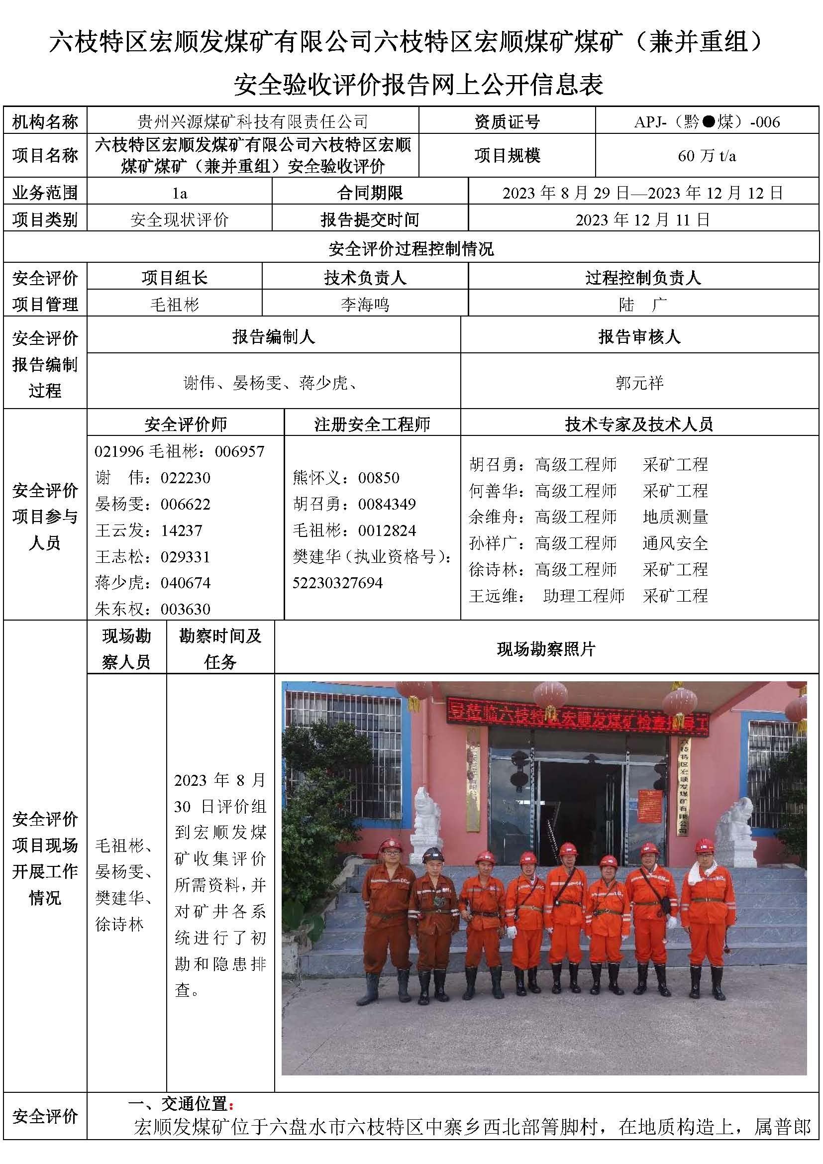 六枝特區(qū)宏順發(fā)煤礦有限公司六枝特區(qū)宏順煤礦煤礦(兼并重組) 安全驗(yàn)收評(píng)價(jià)報(bào)告網(wǎng)上公開(kāi)信息表
