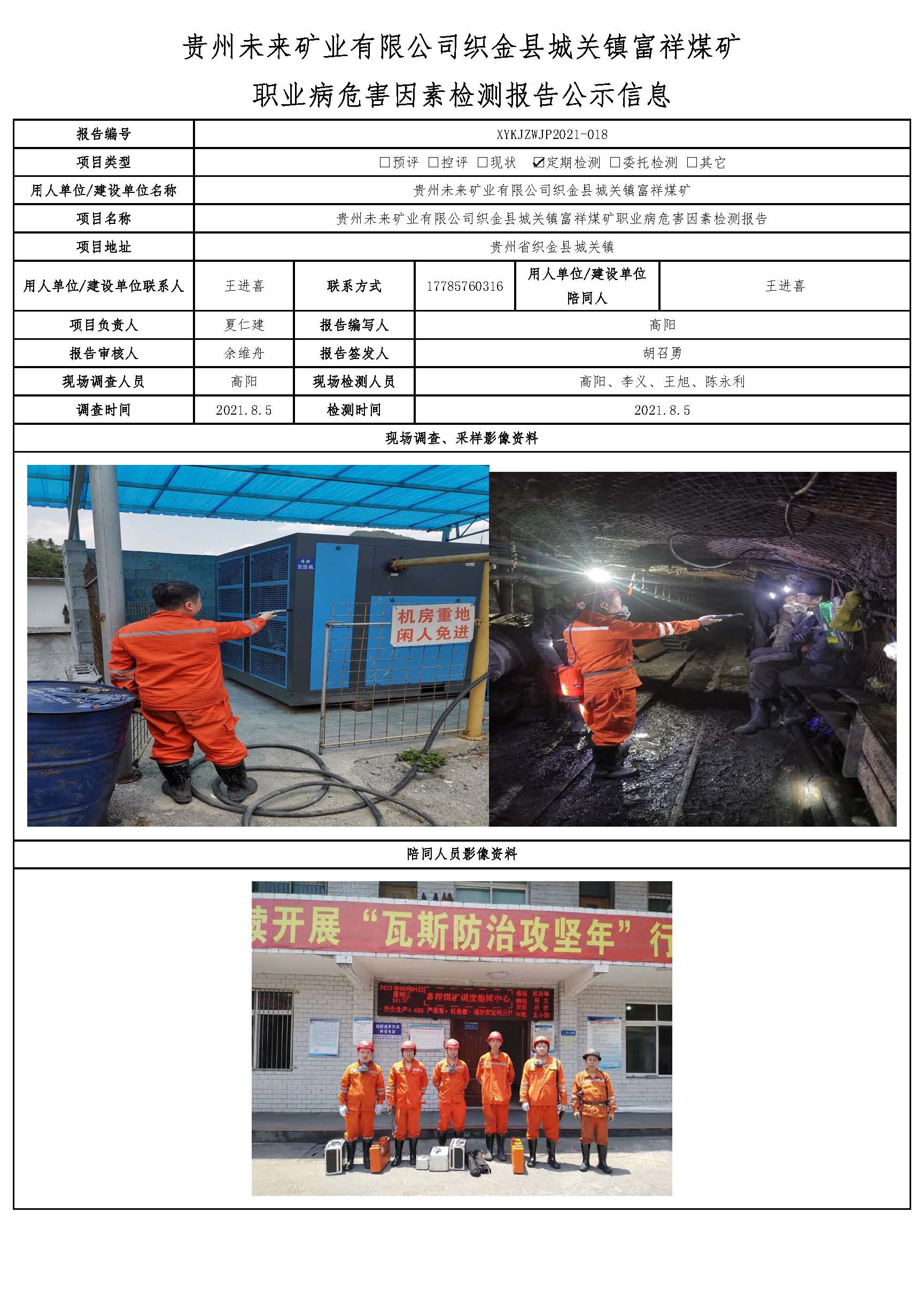 貴州未來礦業有限公司織金縣城關鎮富祥煤礦 職業病危害因素檢測報告公示信息