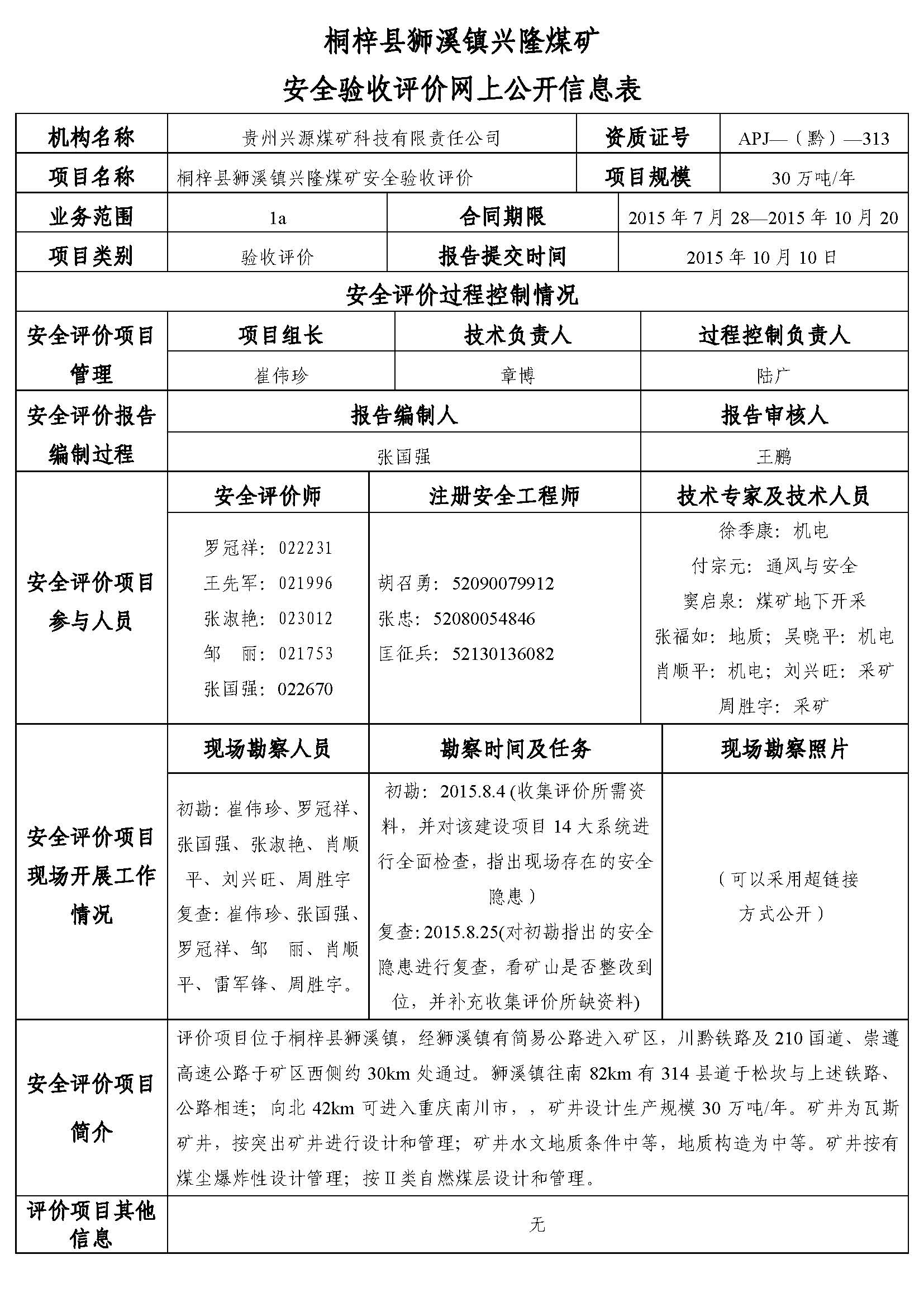 桐梓縣興隆煤礦安全評價業務網上公開信息表
