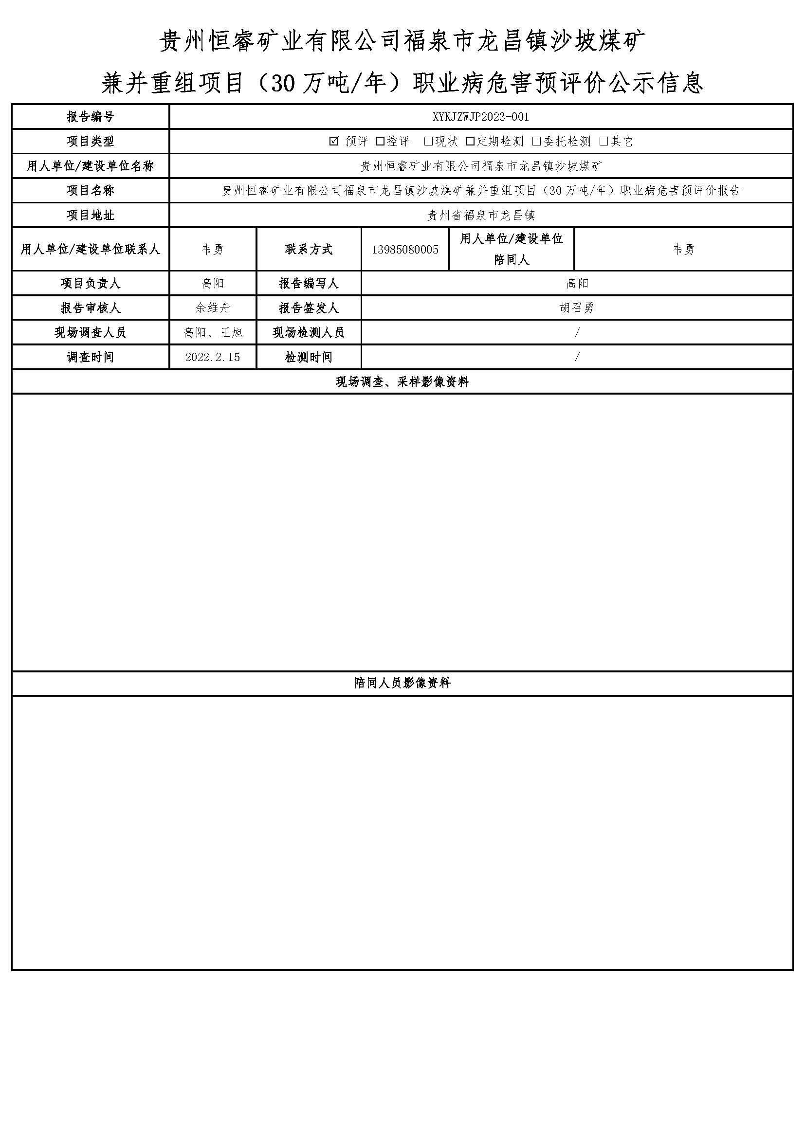 貴州恒睿礦業(yè)有限公司福泉市龍昌鎮(zhèn)沙坡煤礦 兼并重組項目(30萬噸/年)職業(yè)病危害預(yù)評價公示信息