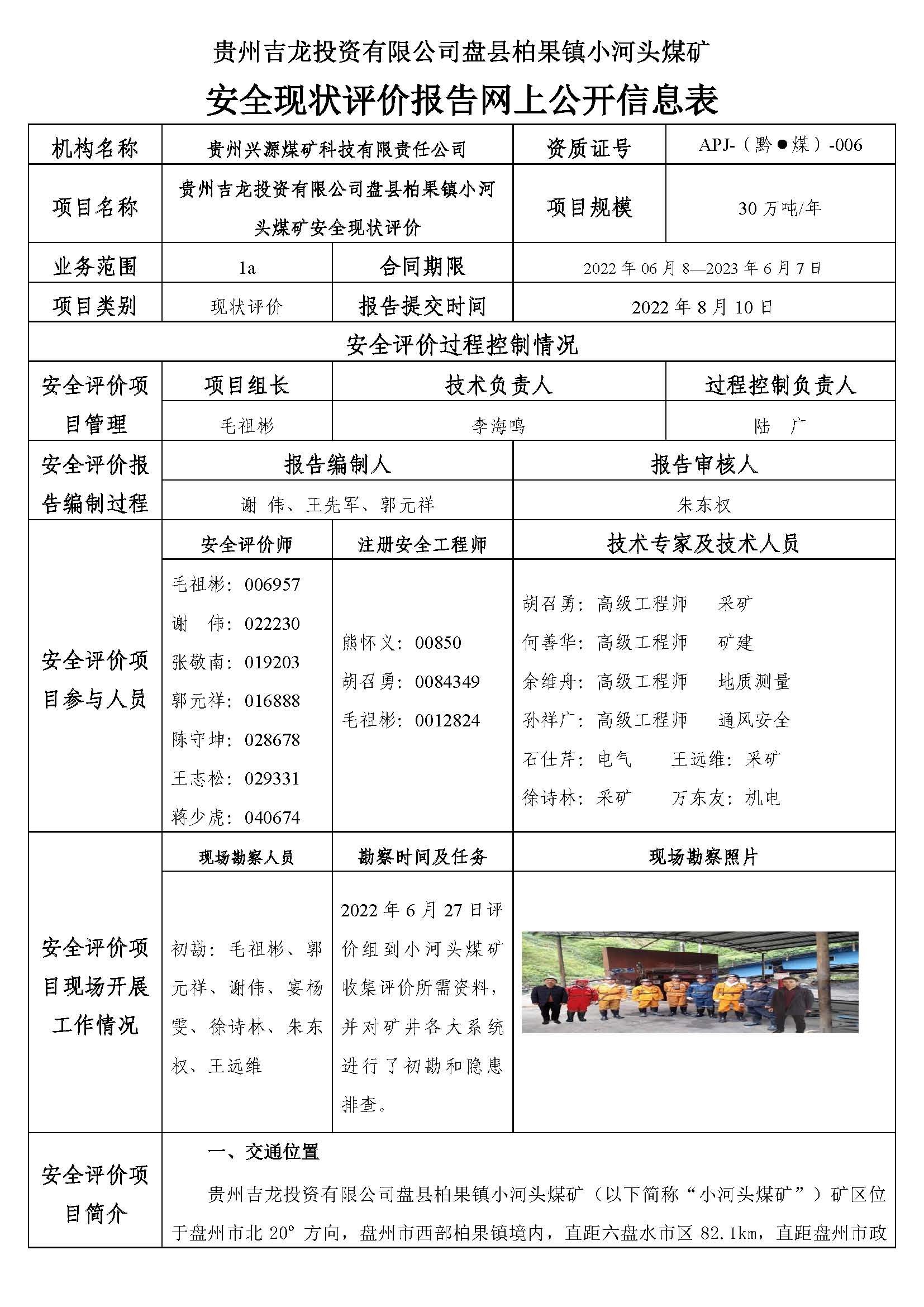 貴州吉龍投資有限公司盤縣柏果鎮(zhèn)小河頭煤礦安全現(xiàn)狀評(píng)價(jià)報(bào)告網(wǎng)上公開信息表