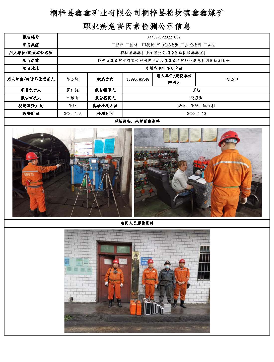 桐梓縣鑫鑫礦業(yè)有限公司桐梓縣松坎鎮(zhèn)鑫鑫煤礦職業(yè)病危害因素檢測(cè)公示信息