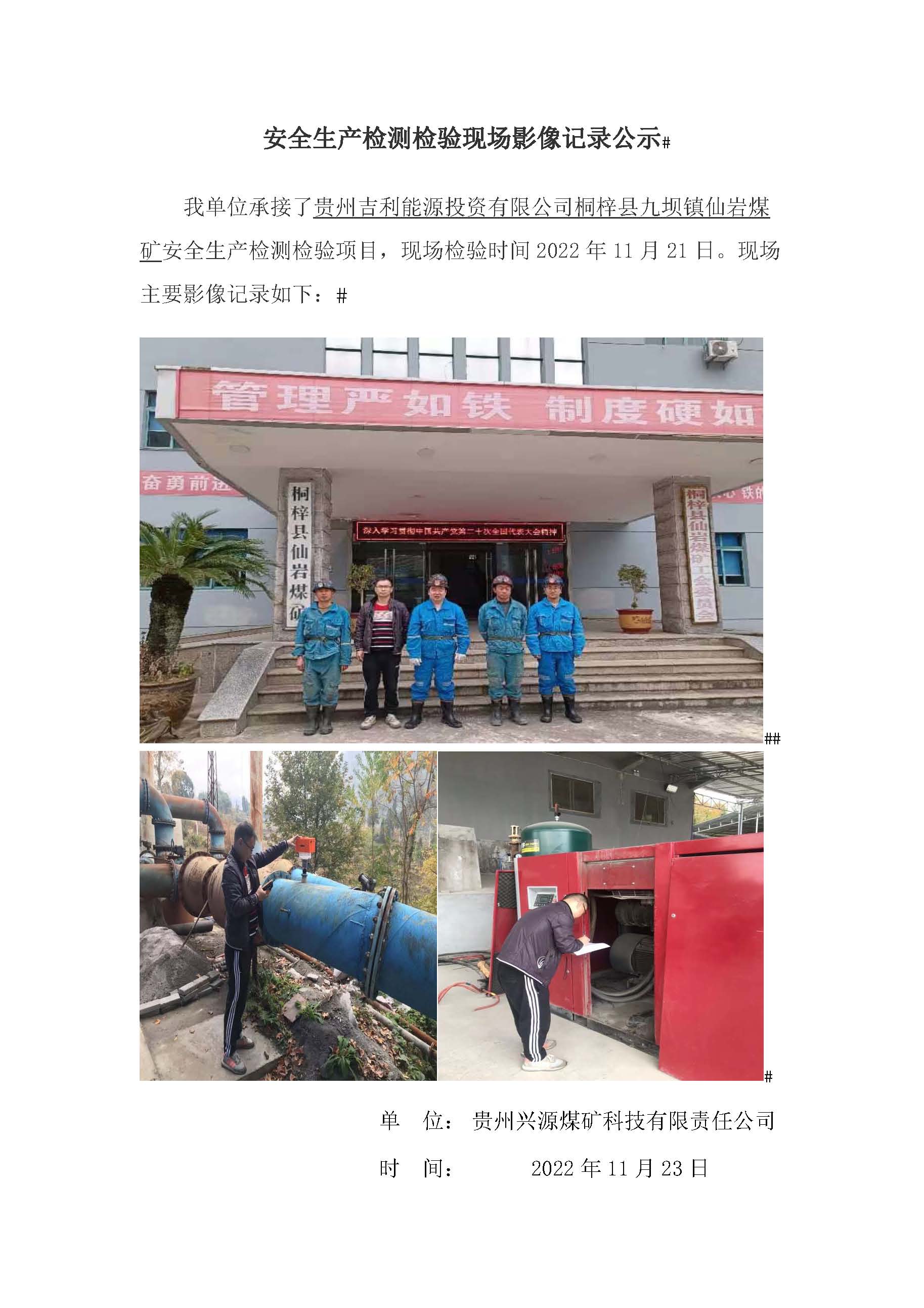 安全生產(chǎn)檢測(cè)檢驗(yàn)現(xiàn)場(chǎng)影像記錄公示【貴州吉利能源投資有限公司桐梓縣九壩鎮(zhèn)仙巖煤礦】