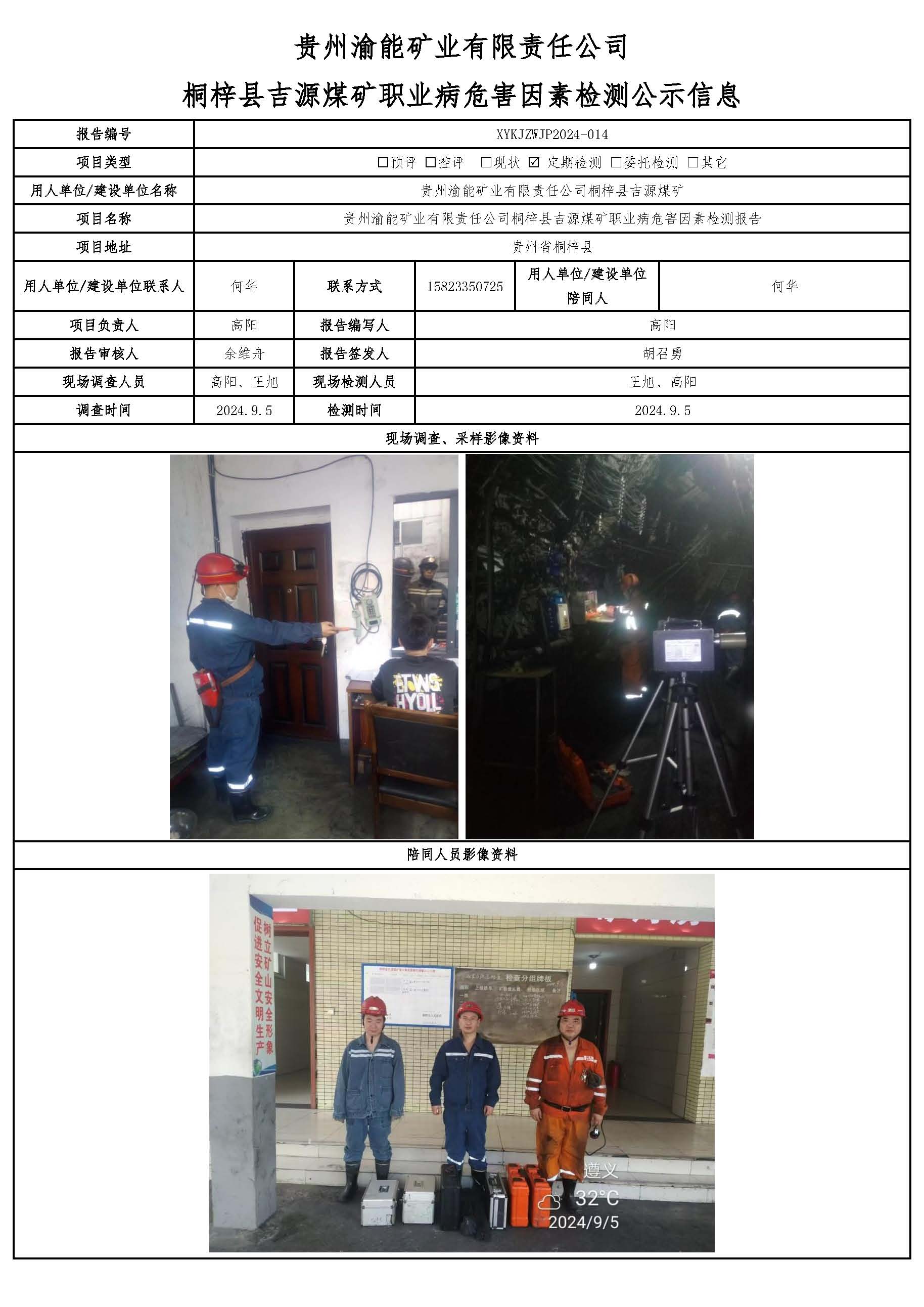 桐梓縣吉源煤礦職業(yè)病危害因素檢測公示信息