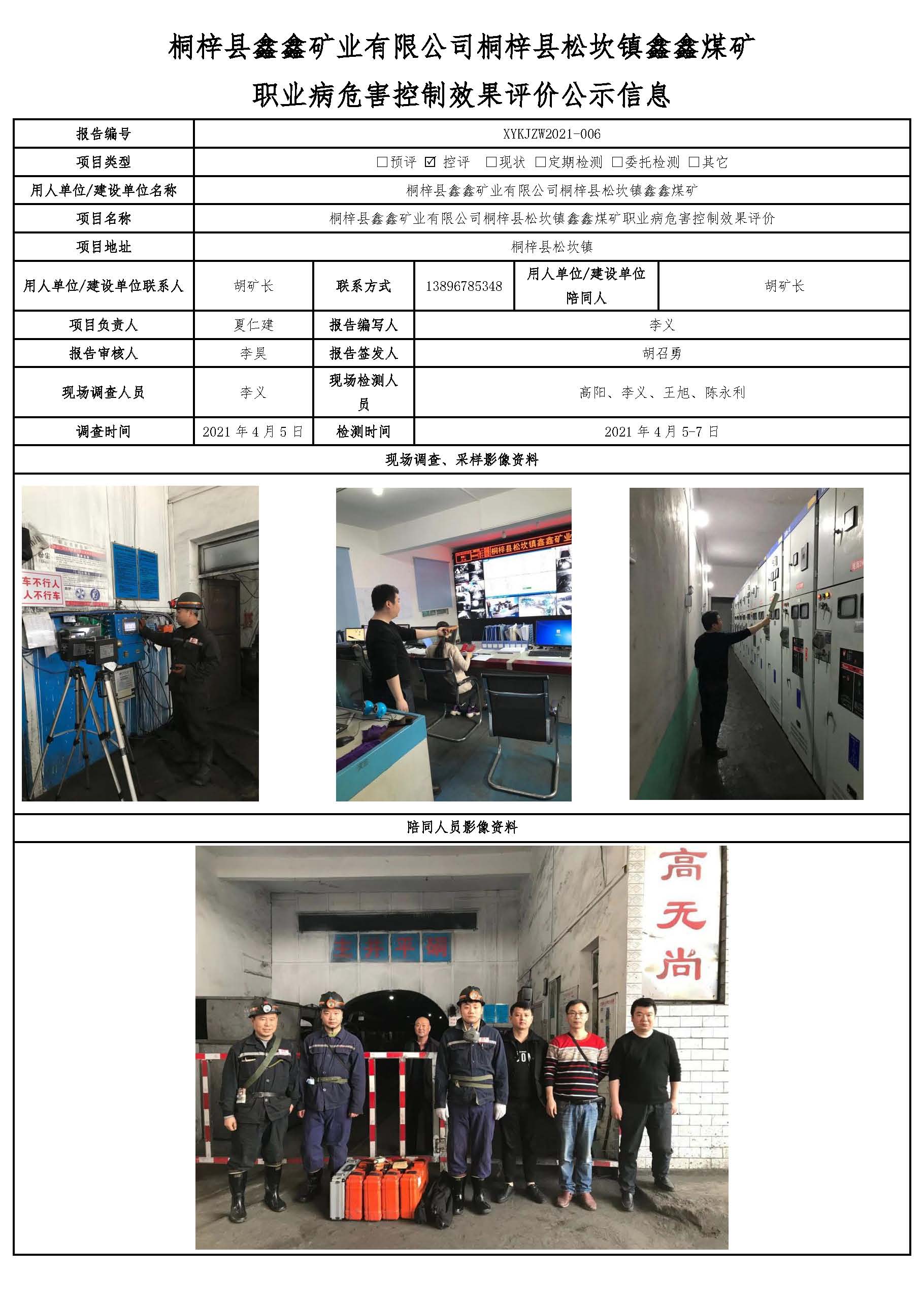 桐梓縣鑫鑫礦業有限公司桐梓縣松坎鎮鑫鑫煤礦 職業病危害控制效果評價公示信息