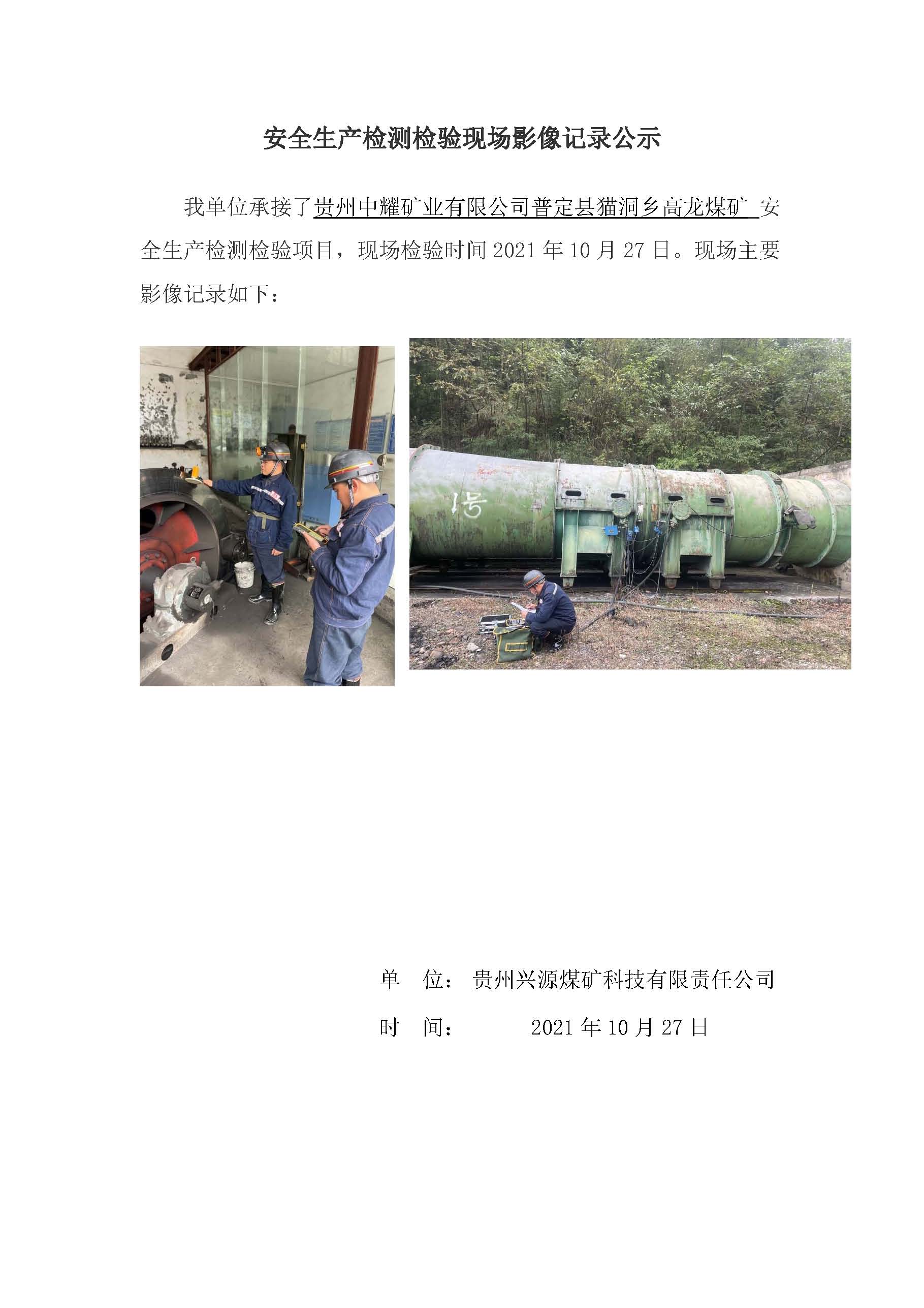 安全生產檢測檢驗現場影像記錄公示【貴州中耀礦業有限公司普定縣貓洞鄉高龍煤礦】