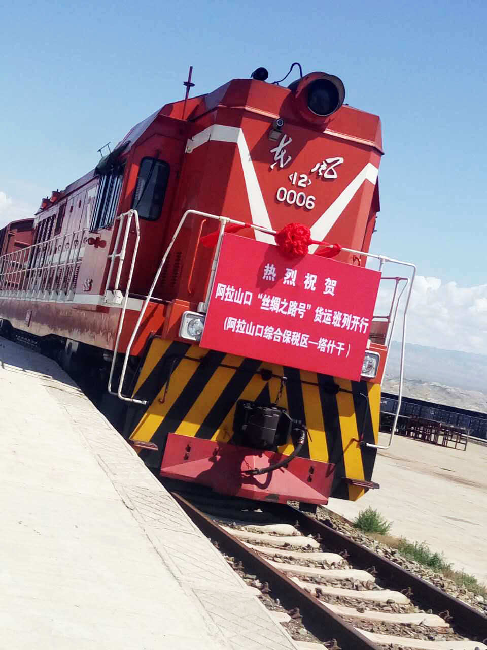 這里是阿拉山口“絲綢之路號”貨運(yùn)班列(阿拉山口綜合保稅區(qū)-塔什干)的開行現(xiàn)場。該組班列裝運(yùn)的是新疆中泰化學(xué)股份有限公司的出口聚氯乙烯,由新疆阿拉山口捷安物流有限公司負(fù)責(zé)口岸裝車、報(bào)關(guān)報(bào)檢及全程境外段運(yùn)輸事宜。